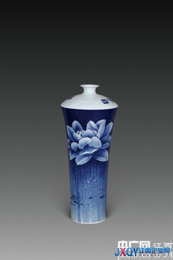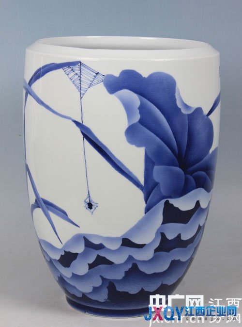 青花在他的笔下,再不是平面上的静物,而是以其饱满的姿态,站立在陶瓷上。