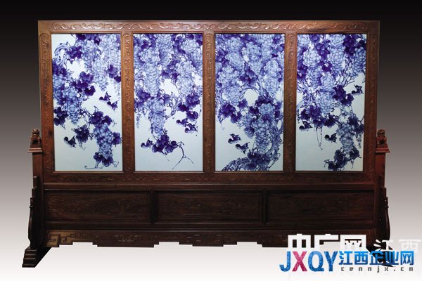 吴志辉的光影青花有国画的构图笔墨和神韵,一点一画一筋一叶,写意中透露的是他的水墨修养。同时,运用了西画黑白灰的对比,使得造型虚实相生、立体鲜活,通过精心布局和青花喷花的深浅浓淡变化,他描绘出的景物呈现着强烈的空间感,光影生动、形态逼真。尤其是他笔下的葡萄,重重叠叠间晶莹剔透,水润诱人。