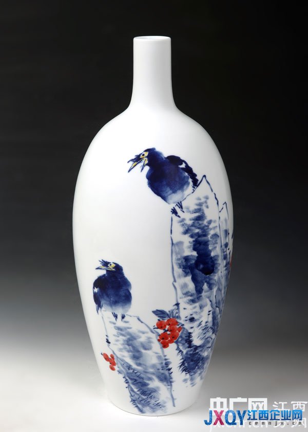 几年前,他最有代表性的艺术创作还要属写意青花,洪南雨用自己独特的陶瓷艺术语言,形象的表现自己的思想意识和审美感受。从2004年开始,他专攻写意青花,他笔下的写意青花花鸟不只是简单的形式摹写,而是涵映世界广大精微于胸的精神抒发。没有浮躁,没有刻意,他凭借宁静的心襟,去发现天地间深沉的意境。